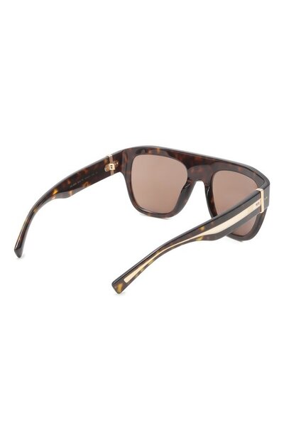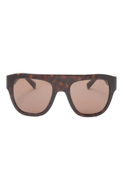 Эти черные солнцезащитные очки с линзами в тон могут стать акцентом в образе, добавив ему таинственности. Крупный аксессуар из прочного, но при этом легкого ацетата с матовым блеском почти не ощущается на лице. Широкие дужки подчеркнуты золотистыми лентами грогрен.