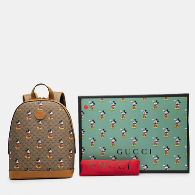 Playful nostalgia meets luxury, this exclusive Gucci Micro GG Supreme dome backpack showcases the iconic canvas with a whimsical Mickey Mouse motif. The ultimate, compact statement piece for street style and discerning collectors.