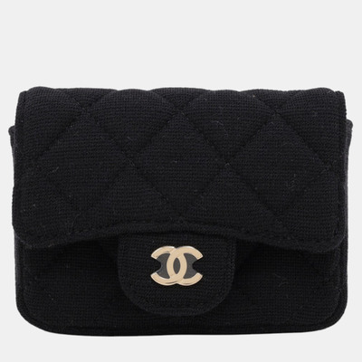 Chanel Mini Classic Black Cotton Jersey Flap Belt Bag 1231758 (чёрный, lpn31069812)