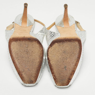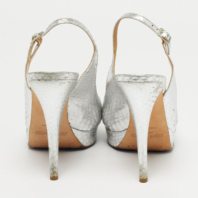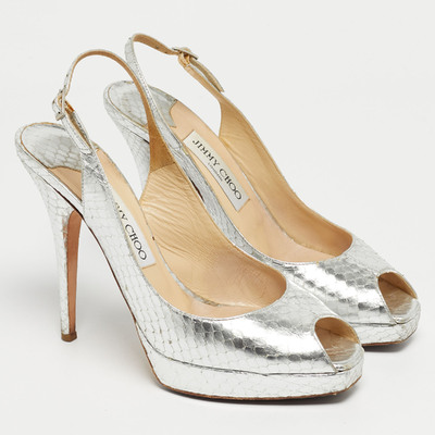 The Nova heels from Jimmy Choo shimmer in silver; their python embossed leather in a metallic finish feels like liquid metal. The peep toe and slingback frame the foot neatly, while the high heel gives the right lift.