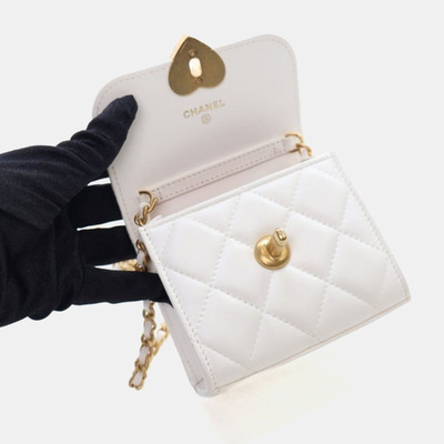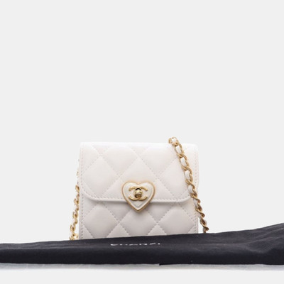 A petite embodiment of whimsy and refinement, this mini crossbody pairs smooth lambskin with a romantic enamel heart. The iconic CC emblem brings lineage to a shape that feels sweet, sculptural, and slightly subversive—a collector’s dream in miniature.
