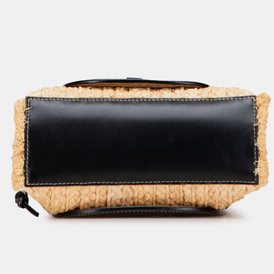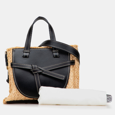 Elevate your style with the Loewe Beige and Black Small Raffia and Leather Gate Top Handle Bag. Combining beige raffia with black leather, this small designer bag features a sleek top handle design, bringing effortless sophistication to both casual and refined ensembles.