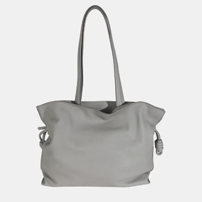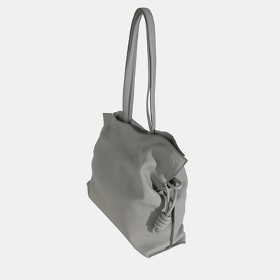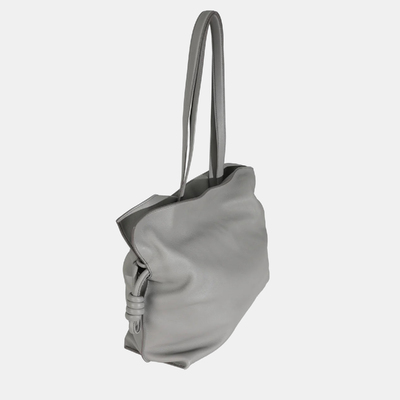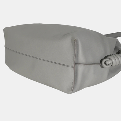 The Loewe Large Flamenco Knot Hobo in Pearl Grey Nappa Calfskin embodies effortless sculptural elegance. Its soft, supple leather drapes beautifully into the signature knotted silhouette, creating a striking balance between structure and fluidity. Compact yet spacious, this bag merges contemporary design with timeless craftsmanship, making it an understated statement piece for the modern connoisseur of luxury.