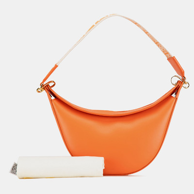 The Loewe Orange Small Leather Luna Hobo captures the house’s sculptural approach to everyday design. Crafted in smooth orange leather, the bag’s curved shape and minimal detailing create a soft yet structured profile. Its effortless form reflects Loewe’s modern craftsmanship and focus on fluid, contemporary lines.
