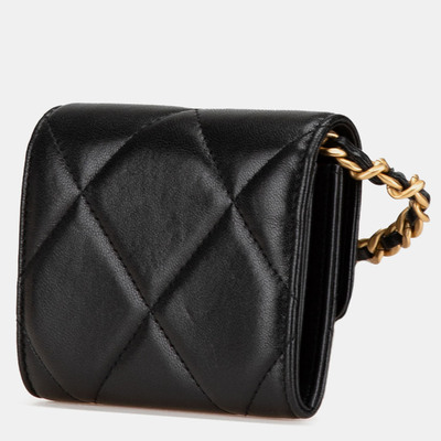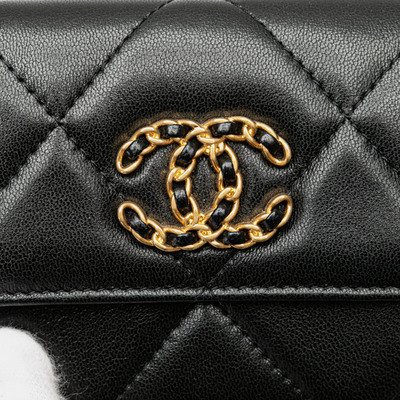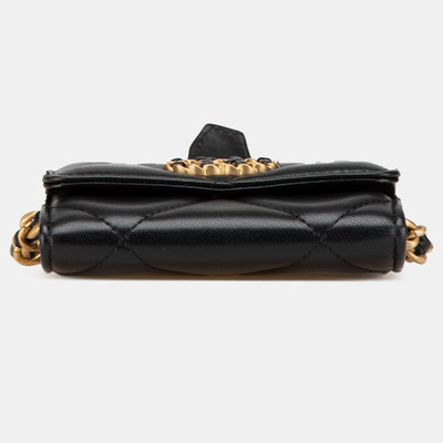The Chanel Black Quilted Lambskin 19 Card Holder On Chain offers a compact, functional take on Chanel’s iconic 19 line. Crafted in supple black lambskin with signature quilting, it provides a wearable profile for essentials while maintaining a refined presence. Its design reflects Chanel’s attention to proportion, texture, and subtle detailing.