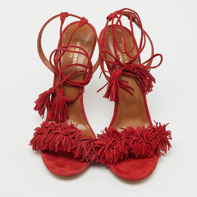 Aquazzura Red Suede Wild Thing Fringe Ankle Wrap Sandals Size 41 1230026 (красный, lpn31069981)