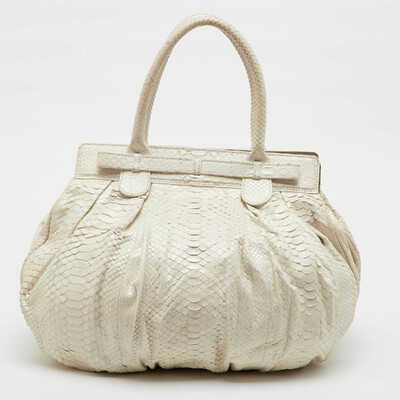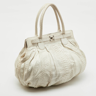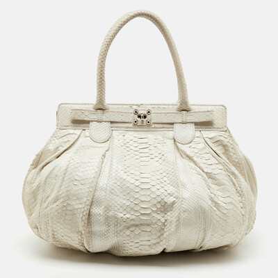 The Zagliani white python satchel has a softness that draws you in at first touch. Its texture and gathered shape give it an easy, lived in beauty that stands apart from structured luxury bags. It’s the kind of piece you carry often, not only because it’s rare, but because it fits into everything you need.