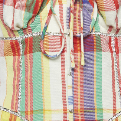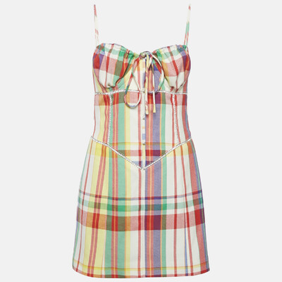 Area Multicolor Plaid Checked Wool Crystal Detail Mini Dress M 1158208 (lpn31070000)