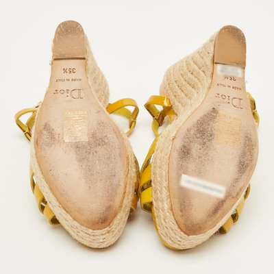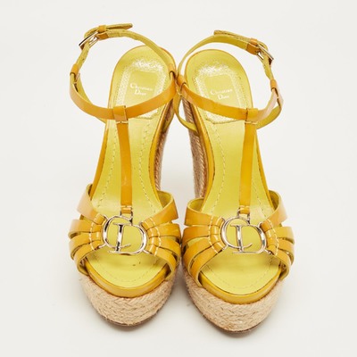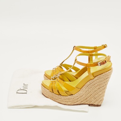 Dior Yellow Patent Leather CD T-Strap Espadrille Wedge Sandals Size 35.5 1229659 (жёлтый, lpn31070002)