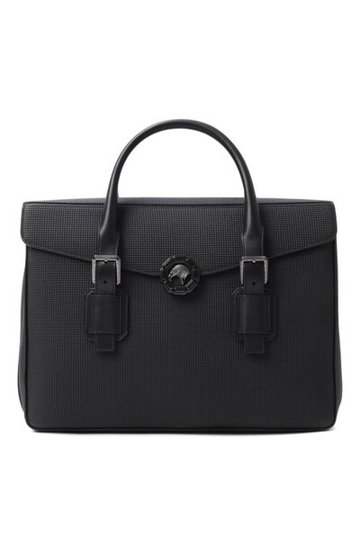 Портфель выполнили из тисненой кожи, а отделку и регулируемые ручки – из гладкой. В аксессуаре, закрывающимся замком в виде фирменной эмблемы Royal Eagle, предусмотрели два отделения, разграниченных карманом на молнии. Еще один карман расположили на внешней панели.