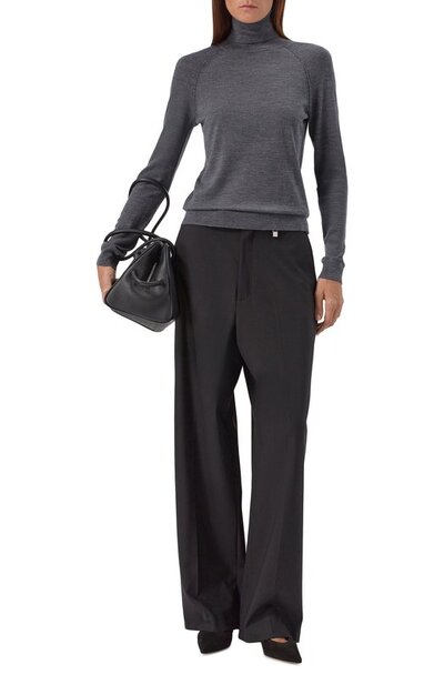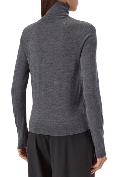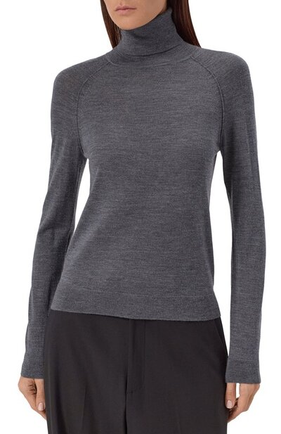 Водолазку Frizani с манжетами, поясом и горловиной в рубчик выполнили из мериносовой шерсти первого пострига. Модель с рукавами реглан органично впишется в базовый гардероб.