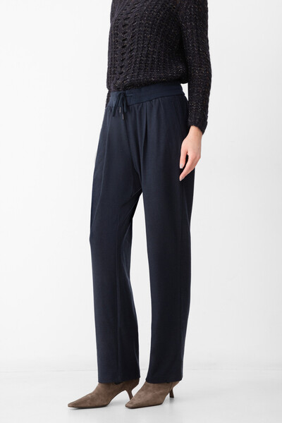Прямые брюки в спортивном стиле от Herno. Для изготовления модели с классическими защипами-вытачками сверху выбрано эластичное джерси на основе шерсти, прочного полиэфира, нейлона и вискозного волокна. Характерной особенностью двухслойного материала, окрашенного в готовом виде, является эффект начёса. Изделие, созданное для отдыха и неформальных мероприятий, дополнит ваш повседневный гардероб благодаря практичному крою.