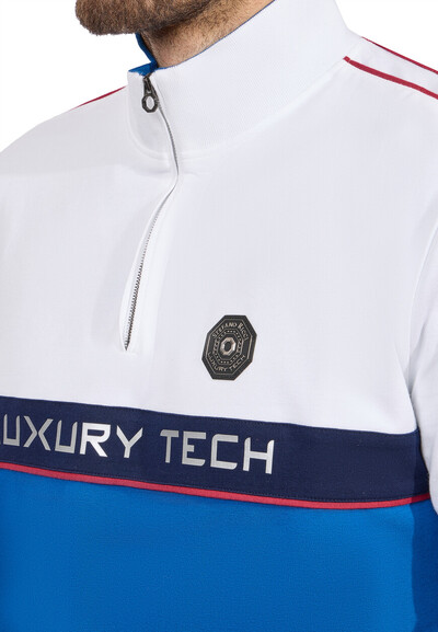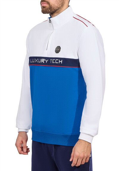 Джемпер от Stefano Ricci — пример сочетания роскоши и функционального стиля. Сочетание глубокого синего и чистого белого цветов создает эффектный контраст, который подчеркивает свежесть и динамичность модели. Изделие выполнено из высококачественных материалов, отличающихся мягкостью и износостойкостью. Яркий синий низ плавно переходит в белую верхнюю часть, где размещены элегантные акценты, такие как фирменная надпись "Luxury Tech" и эмблема Stefano Ricci, подтверждающая премиальный статус изделия. Продуманный крой и высокий воротник-стойка с молнией добавляют современный штрих и позволяют легко адаптировать модель к различным погодным условиям. Ребристые манжеты и подол обеспечивают идеальную посадку и комфорт при носке. Этот джемпер легко комбинируется с различными элементами гардероба, придавая каждому образу завершенность. Премиальность бренда Stefano Ricci проявлена в каждой детали, начиная от отделки швов и заканчивая утонченными вставками, подтверждающими высочайшее качество. Купить его можно по привлекательной цене с удобной доставкой по всей России.