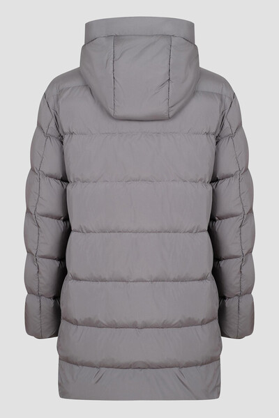Серая куртка Corneliani с горизонтальной стёжкой. Для изготовления изделия с двумя прорезными карманами на молнии по бокам выбран прочный износостойкий полиэстер. За надёжную защиту от холода и порывов ветра отвечают высокий воротник-стойка и глубокий капюшон. Модель имеет продуманный прямой крой, поэтому она хорошо сидит и обеспечивает свободу для активных движений.