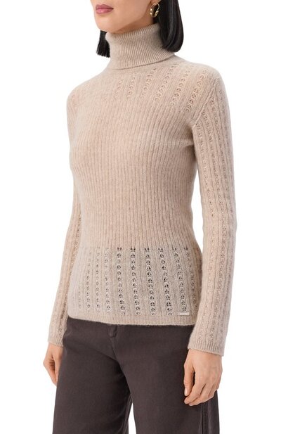 Свитер из кашемира и шелка Kiton d6071530179 (бежевый, lpn31071602)