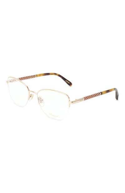 Полуободковую оправу изготовили из металла и ацетата с черепаховым мотивом. Дужки модели украсили сетчатой отделкой, выгравированным логотипом марки и брендированными вставками.