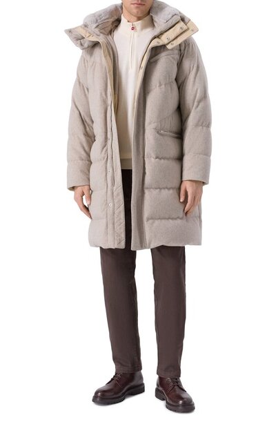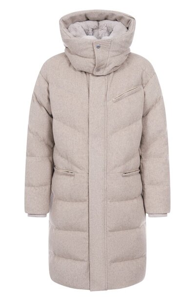 Пуховик с отделкой из кролика KNT ugk147k0260h01 (бежевый, lpn31071925)