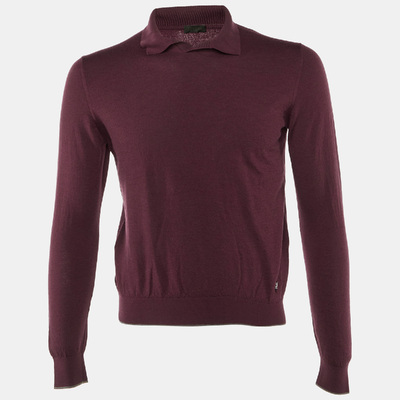 Z Zegna Burgundy Wool Knit Polo Sweater L 1233905 (lpn31076220)