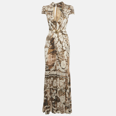 Roberto Cavalli Class Brown Snakeskin Print Jersey Pleated Maxi Dress S 1233667 (коричневый, lpn31076243)