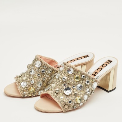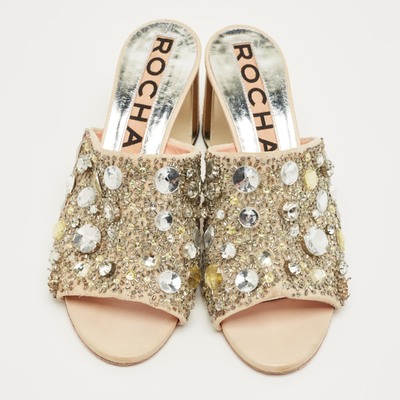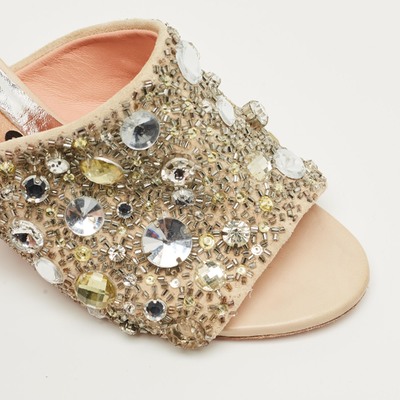 Rochas Beige Suede Crystal Embellished Slide Sandals Size 40 1234007 (бежевый, lpn31076260)