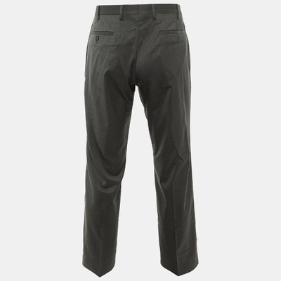 These Giorgio Armani grey wool tailored pants offer impeccable structure and drape for a polished silhouette. Designed with precision seams and a classic straight leg cut, they deliver understated elegance. Perfect for formal settings or upscale everyday styling.