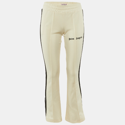 Palm Angels Cream Logo Print Jersey Flared Track Pants S 1233716 (lpn31076288)
