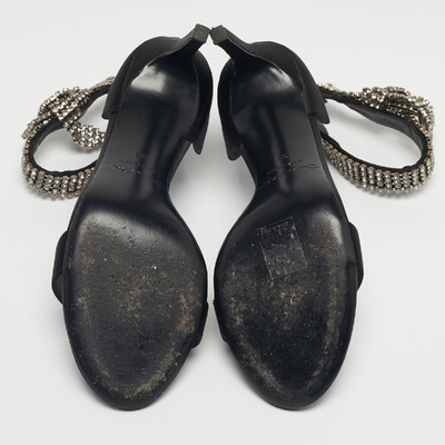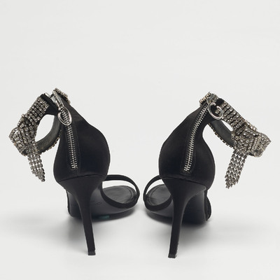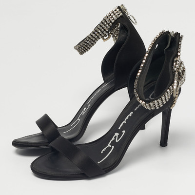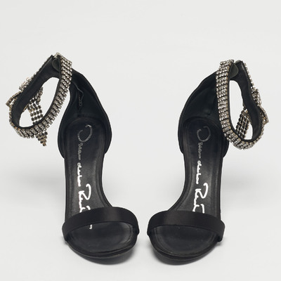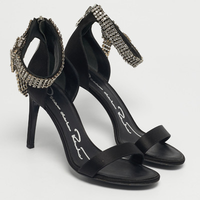 These pre loved Oscar de la Renta sandals are fashioned in an open toe design with a zipped counter, slim heel, and a mesmerizing ankle strap covered in crystals. Theyre elegant in fit and unforgettable in appeal.