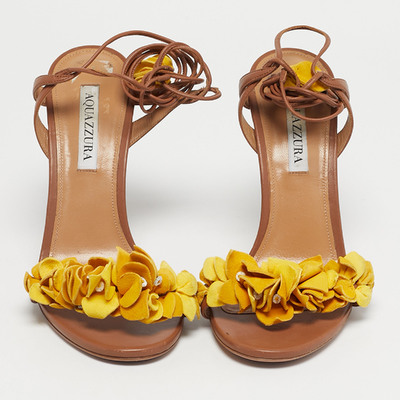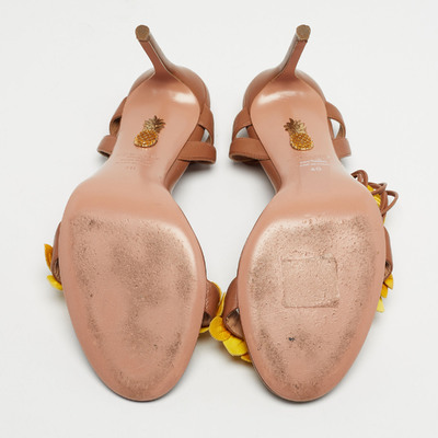 Aquazzura Brown/Yellow Leather Wild Thing Fringe Ankle Wrap Sandals Size 40 1233702 (коричневый, lpn31076392)