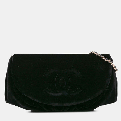 Chanel Black CC Velvet Half Moon Wallet on Chain 1233300 (чёрный, lpn31076473)