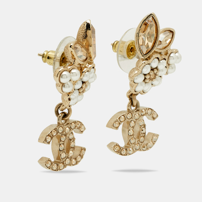 Chanel’s earrings channel classic elegance with their luminous faux pearls framed by crystal embellished CC logos. Cast in gold tone metal, they embody the house’s timeless codes — chic, feminine, and instantly recognizable. A refined finishing touch for any sophisticated look.