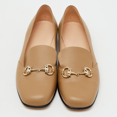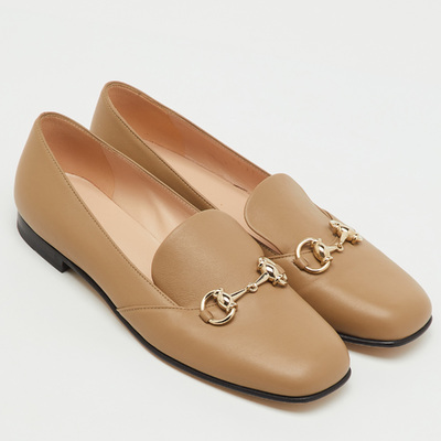 An enduring emblem of the house, these Gucci loafers are crafted from khaki brown leather and finished with the iconic Horsebit hardware. Designed with a sleek slip on silhouette and refined stitching, they represent understated Italian sophistication — ideal for polished daytime looks.
