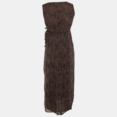 Weekend Max Mara Black /Brown Printed Crepe Wrap Around Sheer Maxi Dress M 1233243 - 1