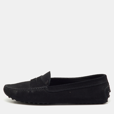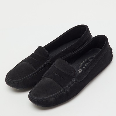 Tod's Black Suede Gommino Slip On Loafers Size 37 1233055 - 1