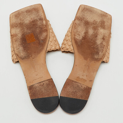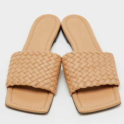 Bottega Veneta Beige Intrecciato Leather Flat Slide Sandals Size 41 1233061 (бежевый, lpn31076616)
