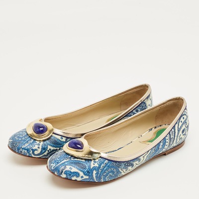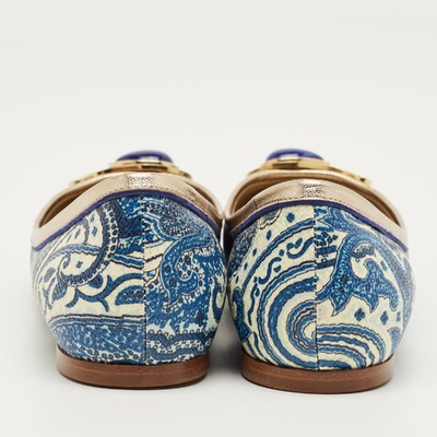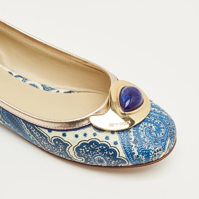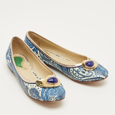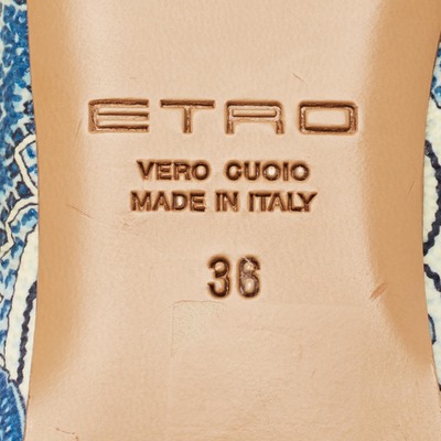 Etro brings its signature paisley artistry to these ballet flats. Crafted from coated canvas with leather trims, they feature a soft almond toe and cushioned interior. Their fusion of Italian craftsmanship and artistic patterning makes them a stylish companion for everyday refinement.