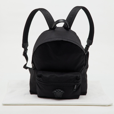 Embrace luxury streetwear with the Versace La Medusa Backpack, crafted from durable black nylon. The iconic Medusa plaque adds a striking statement to its sleek and versatile design. Ideal for travel or daily use, it offers both practicality and prestige.