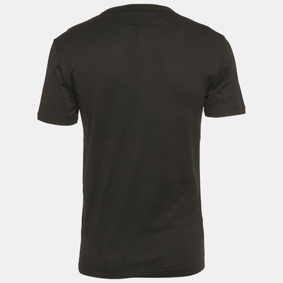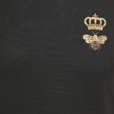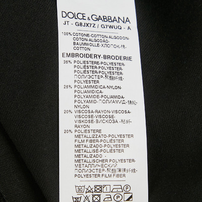 Dolce and Gabbana’s regal touch comes alive in this black cotton T shirt, adorned with an embroidered crown motif that symbolizes majesty and craftsmanship. The slim fit and smooth jersey fabric ensure comfort, while gold thread detailing enhances its luxurious tone. Wear it with dark denim or tailored joggers for understated opulence.