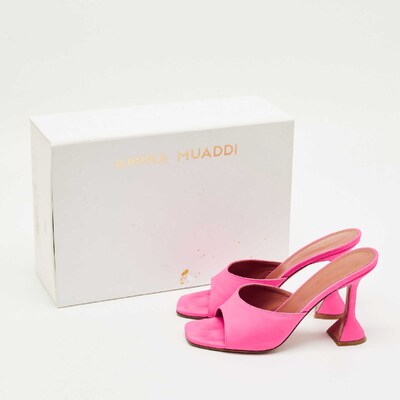 Amina Muaddi Neon Pink Suede Lupita Slide Sandals Size 38 1224210 (розовый, lpn31076700)