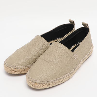 Crafted from soft grey leather and subtly embossed with Loewe’s signature Anagram motif, these espadrilles redefine casual luxury. The natural jute midsole adds a relaxed charm, making them ideal for effortless everyday wear. A refined staple that pairs seamlessly with denim or summer dresses.