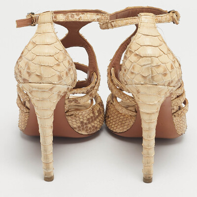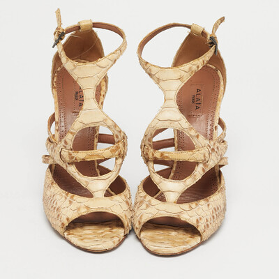 Alaia Beige Python Leather Ankle Strap Sandals Size 37 1233107 (бежевый, lpn31076829)