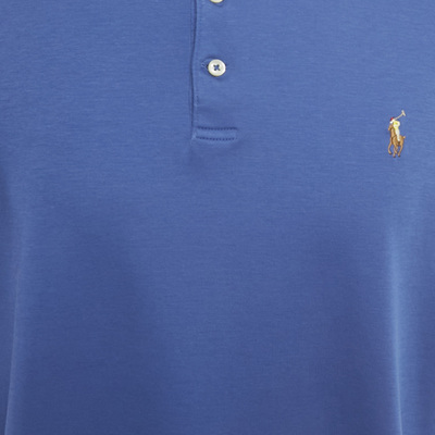This Polo Ralph Lauren polo shirt reflects the label’s timeless sporting heritage. Crafted from breathable jersey cotton, it offers a custom slim fit with signature logo embroidery. The deep blue hue and soft texture ensure effortless style and comfort in every season.