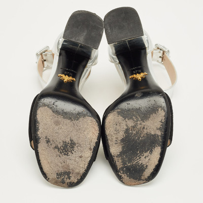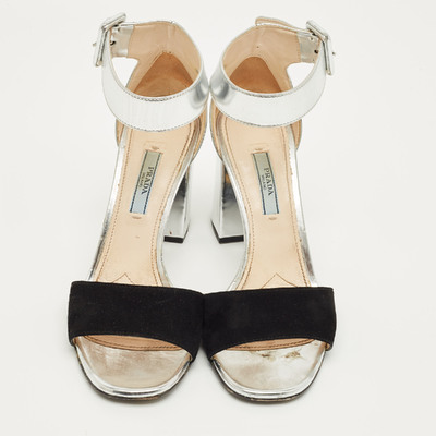 Prada Silver Patent Leather and Suede Ankle Strap Sandals Size 37.5 1232591 (lpn31076910)