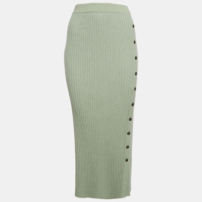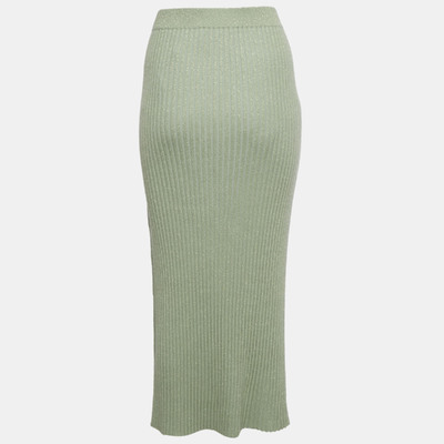 Tory Burch Green Lurex Rib Knit Midi Skirt L 1232571 - 1