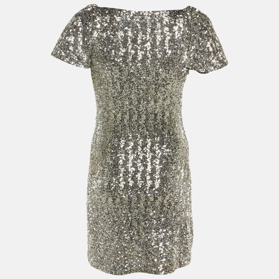 Turn heads with this Saint Laurent silver sequined dress that sparkles with every move. Cut to knee length, it delivers ultimate glam for parties and red carpet worthy moments.