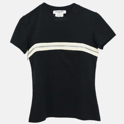 A classic black Christian Dior short sleeve T shirt crafted from soft cotton. Features subtle branding and a comfortable fit. A versatile piece that pairs effortlessly with jeans, skirts, or trousers.