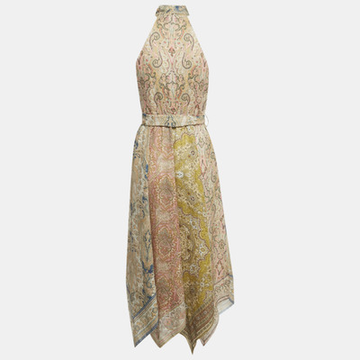Zimmermann’s Freja dress showcases intricate printwork on lightweight linen. The scarf hem silhouette, tie waist, and fluid drape enhance its bohemian appeal. Combining craft and movement, it embodies the label’s balance of femininity and artisanal design.