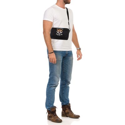 A bold emblem of modern streetwear, this Kenzo crossbody features the brand’s signature tiger embroidered on black fabric. Compact yet practical, it carries essentials securely while adding a graphic edge to any outfit.