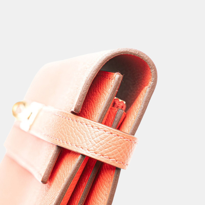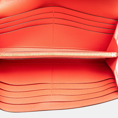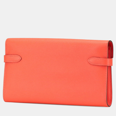 The Hermès Kelly Long Wallet in Rose Jaipur Salmon Pink Epsom Leather is a sophisticated expression of timeless elegance and meticulous craftsmanship. Crafted from Epsom leather, its structured texture ensures durability while offering a refined, tactile finish.