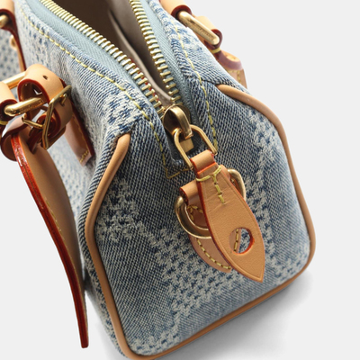 The Speedy Bandouliere 18 in Damier denim blue and brown leather transforms a heritage silhouette into something fresh and dynamic. The denim inspired texture adds a relaxed spirit to its polished form, celebrating Vuitton’s craftsmanship with contemporary ease. Compact yet bold, it feels both playful and sophisticated.