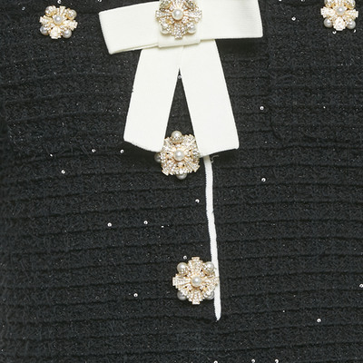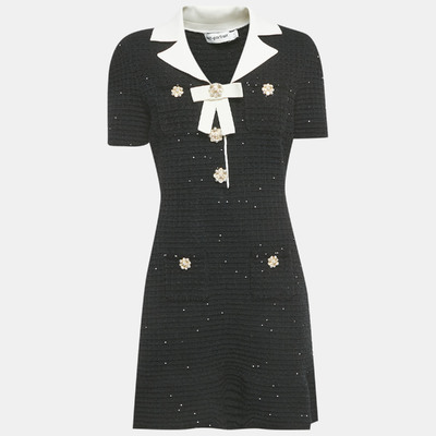 Self-Portrait Black Sequin Tweed Knit Bow Mini Dress M 1231960 (чёрный, lpn31077306)